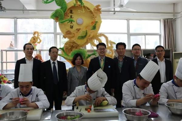 4月19日下午,在市外事辦副調(diào)研員徐燕的陪同下,韓國(guó)楊州市副市長(zhǎng)金大淳一行5人來(lái)學(xué)校參觀訪問(wèn)。校長(zhǎng)任典云等校領(lǐng)導(dǎo)陪同客人參觀了山東藍(lán)海職業(yè)學(xué)校中餐烹飪、面點(diǎn)實(shí)訓(xùn)室、名師食品雕刻室,觀看了老師和同學(xué)們烹飪和食品雕刻表演并品嘗學(xué)生制作的菜品,對(duì)學(xué)校產(chǎn)教融合、產(chǎn)學(xué)結(jié)合的辦學(xué)特色給予高度贊許。