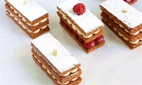 傳統(tǒng)的拿破侖千層酥是由三層酥皮夾兩層奶油制作而成,有時(shí)夾心也會(huì)使用果醬。