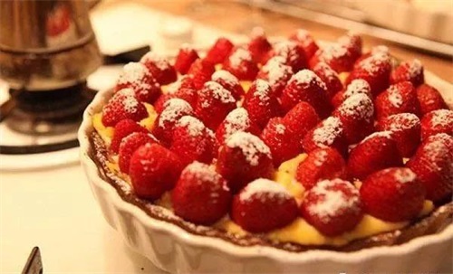 草莓撻中有時(shí)候放的是卡仕達(dá)奶油,有時(shí)候是滿滿的巧克力醬。很多人在法國(guó)買到的第一個(gè)甜品就會(huì)是草莓撻。