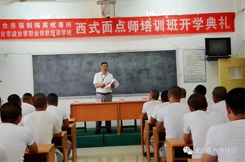 為進(jìn)一步擴(kuò)大煙臺(tái)市強(qiáng)制隔離戒毒所“文化育人”管理新模式的成效,鼓勵(lì)戒毒學(xué)員積極參與習(xí)藝活動(dòng),掌握一定的就業(yè)謀生技能,幫助他們盡快融入社會(huì)。近日,2019年首期煙臺(tái)市強(qiáng)制隔離戒毒所西式面點(diǎn)班在煙臺(tái)波絲蒂學(xué)校開班了,此次培訓(xùn)是煙臺(tái)市人力資源和社會(huì)保障局公共就業(yè)和人才服務(wù)中心、煙臺(tái)市強(qiáng)制隔離戒毒所聯(lián)合煙臺(tái)市波絲蒂職業(yè)技能培訓(xùn)學(xué)校共同舉辦,煙臺(tái)市人力資源和社會(huì)保障局公共就業(yè)和人才服務(wù)中心培訓(xùn)科李科長,煙臺(tái)市強(qiáng)制隔離戒毒所劉所長,教育科李科長,波絲蒂西點(diǎn)培訓(xùn)學(xué)校陳校長共同出席了開班儀式。