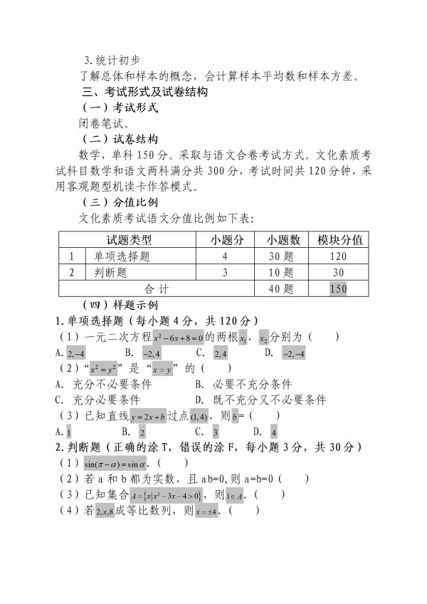 本考試大綱是依據(jù)國家發(fā)布的《普通高中課程方案》和學(xué)科課程標(biāo)準(zhǔn),同時(shí)結(jié)合我省普通高中和中職學(xué)校數(shù)學(xué)教學(xué)實(shí)際情況編寫制定的。