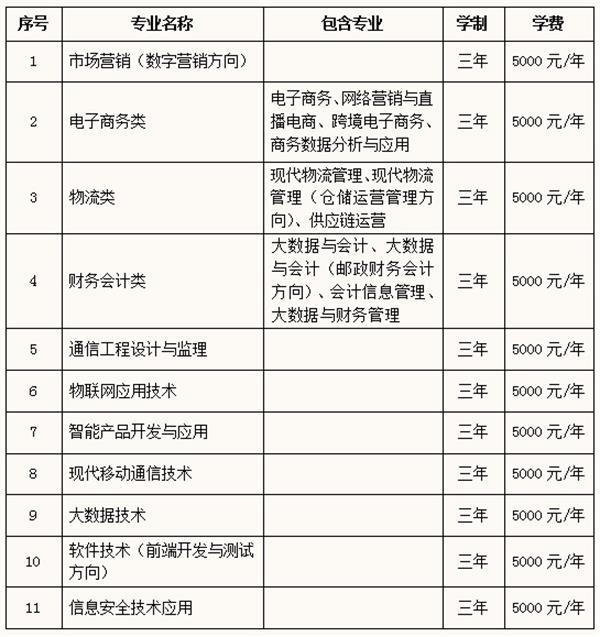 1.各專業(yè)學(xué)費均為5000元/學(xué)年,住宿費500或800元/學(xué)年。