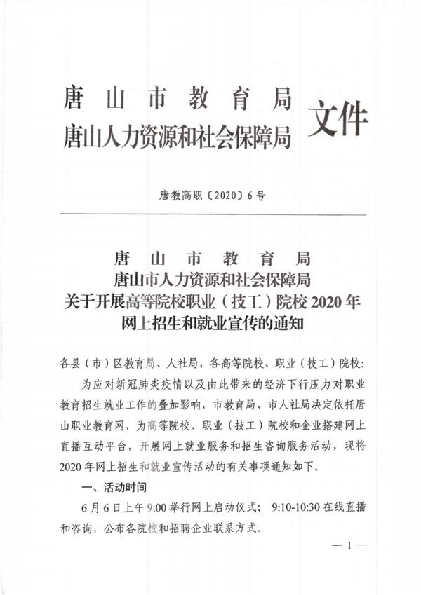 相關(guān)閱讀:唐山市教育局唐山市人社局 關(guān)于開(kāi)展網(wǎng)上招生和就業(yè)宣傳的通知
