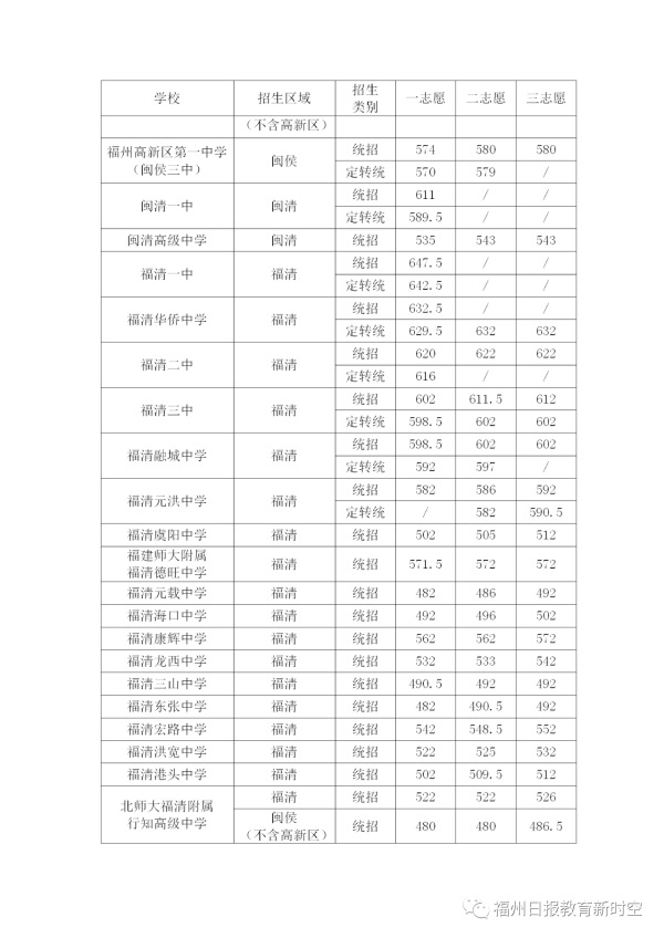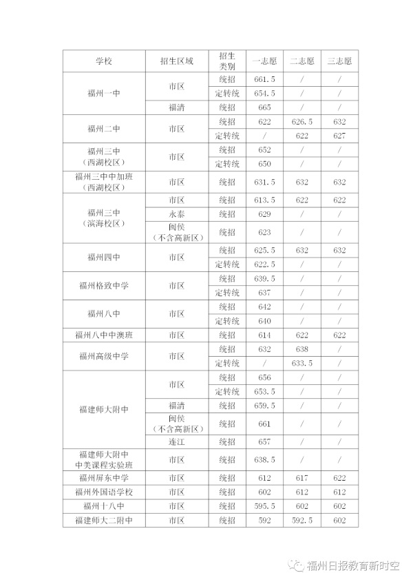 2020年福建福州中考普高學校最低錄取分數(shù)線公布