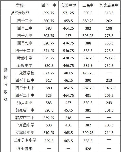 根據(jù)2020年四平市初中畢業(yè)生學(xué)業(yè)水平考試成績(jī),結(jié)合市直高中招生計(jì)劃和考生志愿,經(jīng)統(tǒng)計(jì)測(cè)算,現(xiàn)將市直高中學(xué)校招生錄取分?jǐn)?shù)線公布如下: