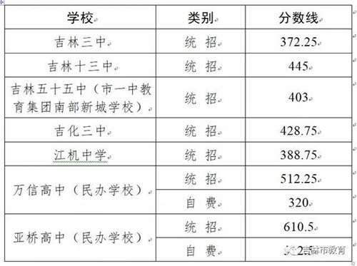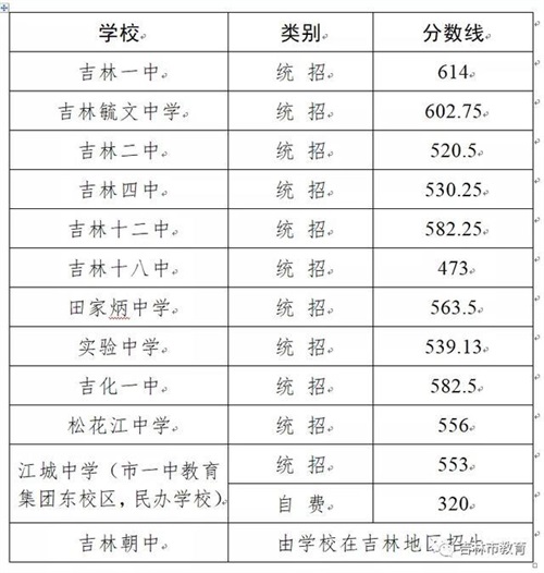 2020年吉林市中考城區(qū)高中錄取分?jǐn)?shù)線發(fā)布