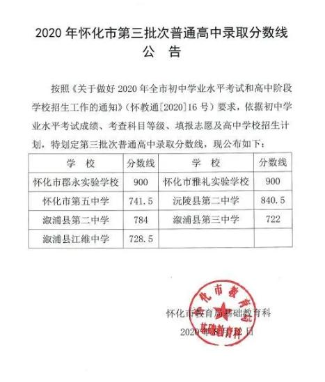 剛剛,懷化市教育局公布了本市中考第三批次錄取分?jǐn)?shù)線,其中郡永實(shí)驗(yàn)中學(xué)和雅禮實(shí)驗(yàn)中學(xué)均為900分,具體情況如下: