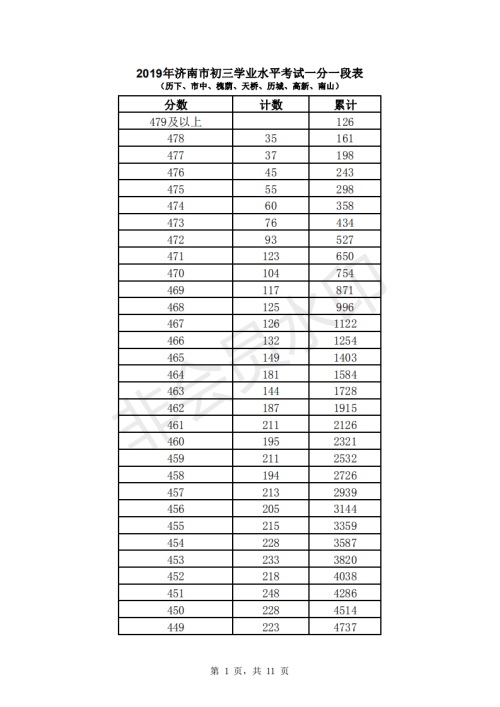 2019年濟(jì)南市中考成績一分一段表出爐啦,具體詳情如下所示: