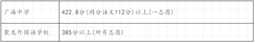 四、廣海、聚龍外國語兩所民辦高中統(tǒng)招生切線情況