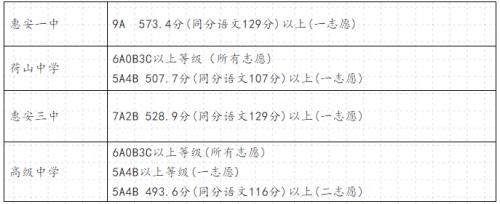 最低錄取分?jǐn)?shù)線為4A0B5C0D,惠安一中最低錄取分?jǐn)?shù)線為7A0B2C0D。具體見各校定向生招生錄取切線表;缺額定向生計(jì)劃面向定向生重新統(tǒng)招錄取切線:
