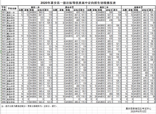 8月12日下午,惠安縣招委會(huì)召開全體委員會(huì)議,確定了2020年惠安縣普通高中招生錄取分?jǐn)?shù)線,具體切線如下: