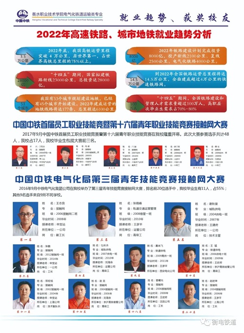 衡水職業(yè)技術(shù)學(xué)院電氣化鐵道運(yùn)輸類專業(yè)是學(xué)院與中國中鐵深入校企合作、產(chǎn)教融合共建特色專業(yè),打造鐵路和軌道交通行業(yè)“文化素質(zhì)+職業(yè)技能”的新型大學(xué)生人才培養(yǎng)模式,是全國鐵路企業(yè)舉辦的電氣化鐵道運(yùn)輸類專業(yè)的國家級重點(diǎn)職業(yè)院校,是國家電氣化鐵道運(yùn)輸類和地鐵行業(yè)后備力量的主要來源,是中國電氣化鐵道運(yùn)輸類高技能人才培養(yǎng)基地。學(xué)院下設(shè)"鐵道供電技術(shù)”、“鐵道信號自動(dòng)控制"、城市軌道交通運(yùn)營管理"、“鐵道機(jī)車運(yùn)用與維護(hù)”專業(yè),具備了全日制大專學(xué)生的培養(yǎng)資格,打造鐵路及軌道交通行業(yè)"文化素質(zhì)+職業(yè)技能"的新型大學(xué)生人才培養(yǎng)模式,突出   "應(yīng)用"  與  "技能"兩個(gè)特點(diǎn),在提高大學(xué)生文化素質(zhì)的基礎(chǔ)上,運(yùn)用學(xué)校雄厚師資和全真鐵路"四電"及運(yùn)輸專業(yè)綜合實(shí)訓(xùn)基地開展“真刀真槍"的實(shí)訓(xùn)課程.使培養(yǎng)出來的大學(xué)生不是只懂理論知識的花瓶,而是成為I正掌握實(shí)際操作技能的優(yōu)秀者。