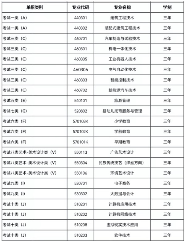 (一)單獨招生專業(yè)