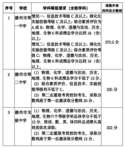 德州公辦普通高中學(xué)校和民辦普通高中學(xué)校第一批次志愿的錄取分?jǐn)?shù)線和錄取結(jié)果公布。其中,德州一中370.5分、德州二中335分、德州實驗中學(xué)322分。 公辦普通高中學(xué)校錄取分?jǐn)?shù)線(不含藝體生) ..